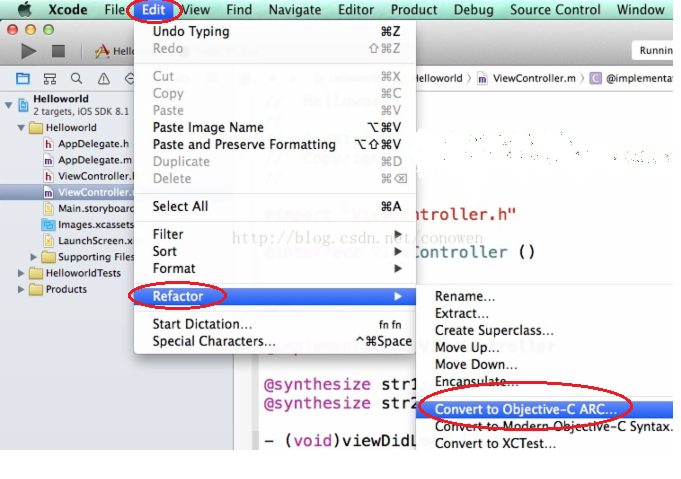 把MRC文件转为ARC,实际上是去掉文件中的retain、release,因此也通过下图中方式完成。