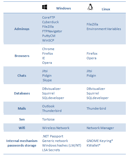 (*) 有些软件可能存在使用插件等方式保存密码:Chrome, Owncloud, Evolution, KMail
