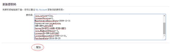LicenseID是cmd.exe运行 .gen!得出的授权码,将以上授权码信息填入授权码输入框,点击“增加”按钮,如下所示: