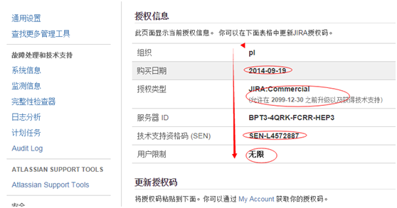 所以需要破解,破解包下载地址为:http://download.csdn.net/detail/mchdba/7950429。解压缩后,将附件中的atlassian-extras-2.2.2.jar替换你的JIRA的安装目录的atlassian-jiraWEB-INFlib同名jar包。