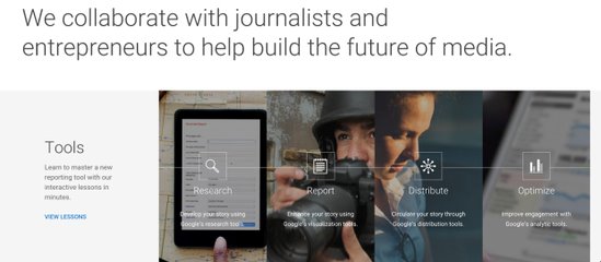 “新闻实验室”网站上提供了使用谷歌服务的教程,例如如何进行高级搜索以及用图片搜索。
