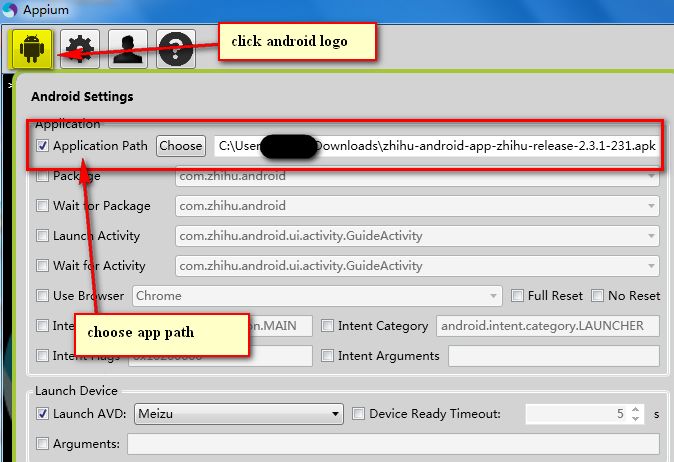 首先解析zhihu app 拿到其package 和 activity,这里使用appium gui界面,具体操作如图: