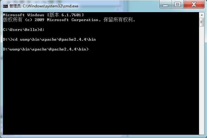 cd wampinapacheApache2.4.4in(回车/进入 bin目录)