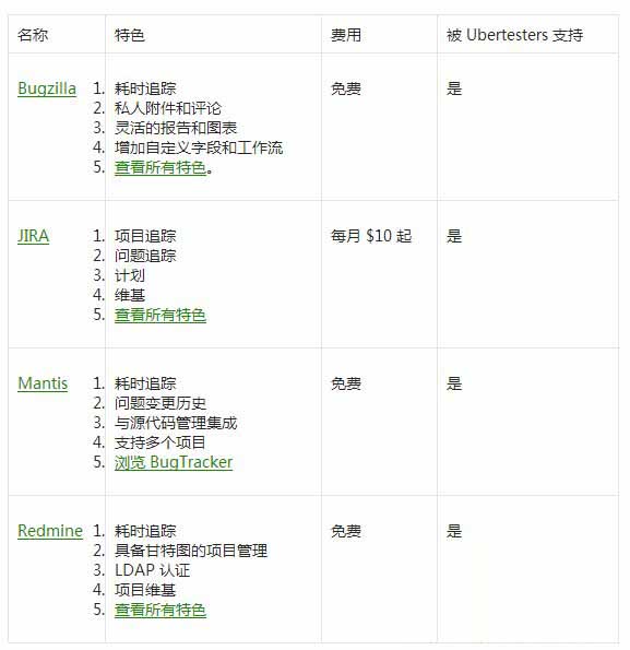 下面列出了流行的 4 个缺陷跟踪系统及其特色。