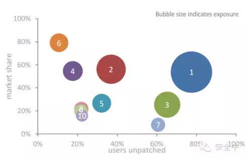 “因此,如果运行着市场占有率高达25%的Adobe Reader X 10.x的个人电脑上,有65%的用户没给这款软件打补丁,那么所有个人电脑中的17%会因为这款软件而成为黑客攻击的目标。同时,这些电脑上还有可能安装有其他没打补丁的脆弱程序,让这些电脑更加漏洞百出。打补丁这事儿是个使用习惯问题,习惯使自己电脑处于新状态的用户会一直保持自己电脑上的所有程序都实时更新,没有打补丁概念的用户基本上自己电脑上所有程序都是处于初始安装状态……”