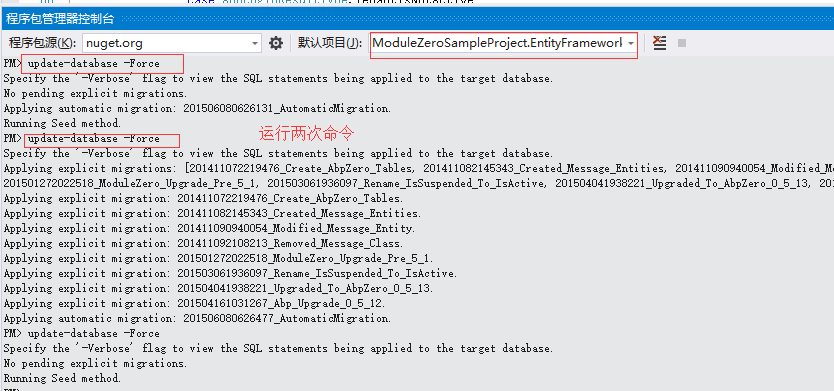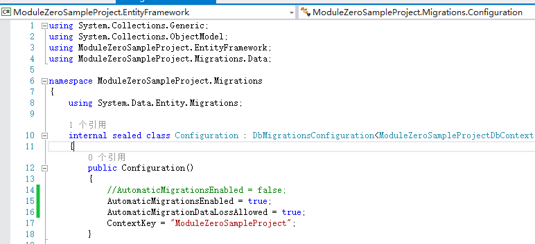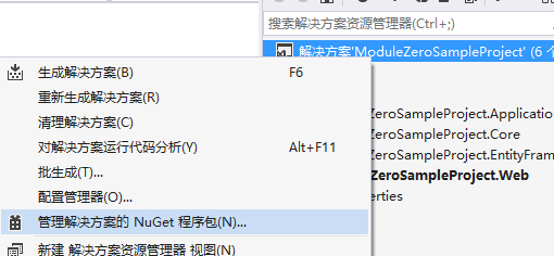 2、设置 ModuleZeroSampleProject.Web 为启动项目【带有有数据库连接字符串的项目】