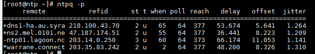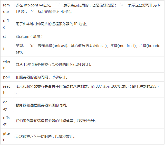 我们可以使用ntpq命令来检查本地服务器的时钟如何通过NTP同步。