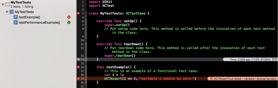 让我们看看测试项目中的代码, MyTestTests.swift:
