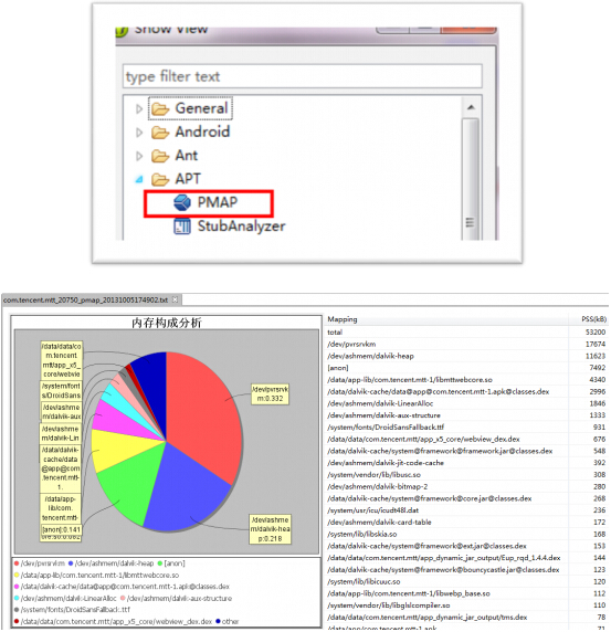 查看快照:点击Eclipse工具栏Windows-》ShowView-》other,选择APT视图PMAP, 在PMAP视图中点击打开快照文件。