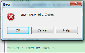 原来select into是PL/SQL的赋值语句!而这里的使用格式和赋值的格式是不一致的。
