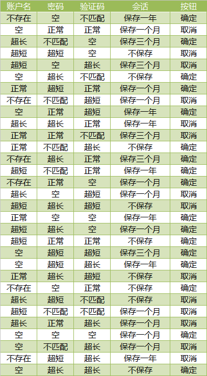 这里使用一个登陆界面的测试作为例子,程序流程中共有5项待测环节。