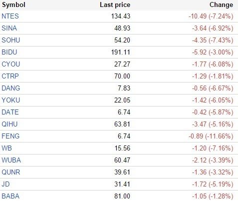 中国概念股周一早盘全线下挫:迅雷跌12.7%