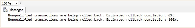 这里还有一个小小的提醒:你可以使用ROLLBACK IMMEDIATE即时终止你的活动事务,但不要让它随机执行,除非你明确知道它们不再需要或者经过审查发现因任何原因出现数据库的连接我们无法手动终止,那做吧~