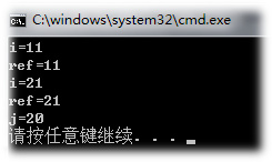 对ref的++操作是直接反应到所指变量之上,对引用变量ref重新赋值”ref=j”,并不会改变ref的指向,它仍然指向的是i,而不是j。理所当然,这时对ref进行++操作不会影响到j。而这些换做是指针的话,情况大不相同,请自行实验。输出结果如下: