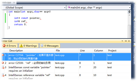 在指针定义语句的指针名前加const,表示指针本身是常量。在定义指针常量时必须初始化!而这是引用天生具来的属性,不用再引用指针定义语句的引用名前加const。