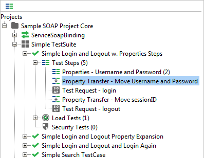 用于移动不同的步骤之间属性的一步。这可能从一个属性转移到一个请求: Property Transfer: Move Username and Password,或者从测试请求的属性移动到另一个测试请求,像 Property Transfer: Move sessionID一样。