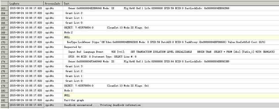 9、在errorlog里已经看到spid为4的死锁监视器(LOCK MONITOR)已经监测到死锁的存在