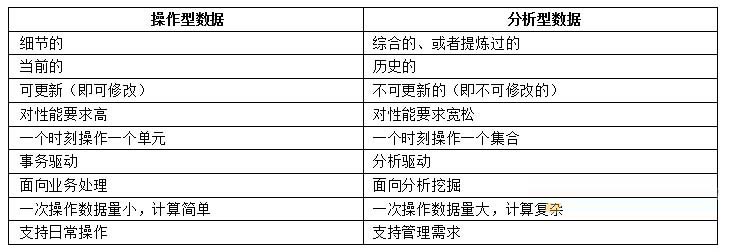 因此,为了克服以上问题,使两种数据操作都能够有效的进行,产生了数据仓库。
