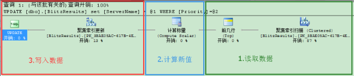 一般来说,当执行UPDATE语句时,SQL Server会用到更新锁(Update Lock)。如果你查看对应的执行计划,你会看到它包含3个部分