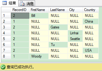在分组阶段(Grouping Phase)我们压缩我们的EAV表为不同的数据库实体。在这里我们在RecordID列进行一个GROUP BY。在第2阶段的,摊开阶段(Spreading Phase),我们使用多个CASE表达式来旋转行为列。后在聚合阶段(Aggregation Phase)我们使用MAX表达式来为每个行和列返回不同值。我们来看下列T-SQL代码。