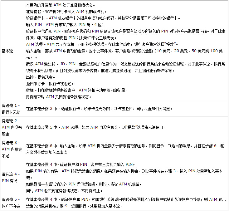 表1-3 提款场景
