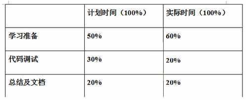 计划时间与实际完成任务时间基本吻合,主要的不同点在于对学习准备的时间估计不足,因为有一些知识以前没有接触过,所以查资料学习时,看的比较杂、比较多,耗费较长时间,而在学习之后,相对的代码调试显得更加得心应手了。