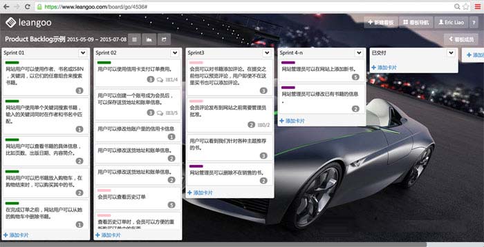 Leangoo是一个非常简洁的看板协作工具,我们可以通过Leangoo创建产品Backlog看板来管理敏捷需求。下图是一个产品Backlog看板的示例: