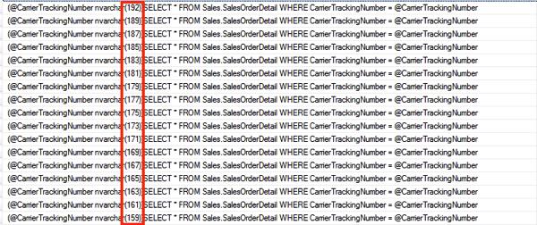 6 "SELECT * FROM Sales.SalesOrderDetail WHERE CarrierTrackingNumber = @CarrierTrackingNumber",