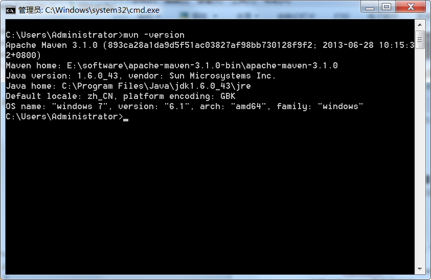 下载Maven并配置好环境变量,同时将settings.xml文件拷贝到User/Administrator/.m2下。通过maven -version来验证是否安装成功:
