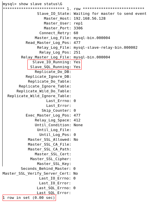 来检查从服务器的同步情况,一个正常的输出结果应该如下面的形式: