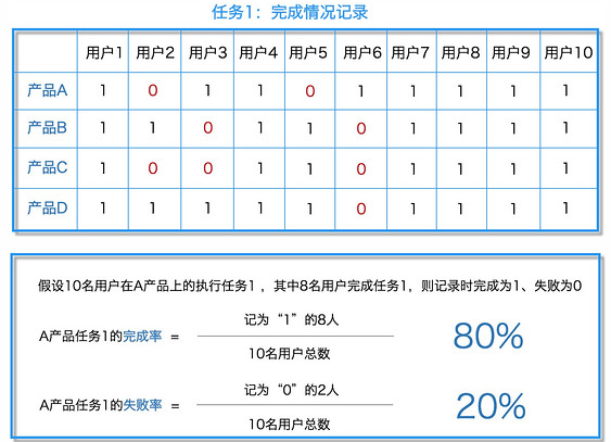 注:二进制完成率即是基础可用性度量指标,也是应用到所有科学领域的度量指标。