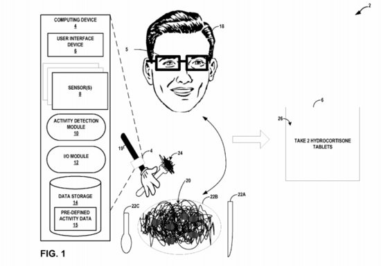Google 认为,按时吃药对健康很重要,哪怕是吃饭的时候。近日美国专利局公布了一项Google申请的可穿戴设备新专利,该设备可以在人吃饭的时候提醒此人服用可吸收的物质,比如药物。