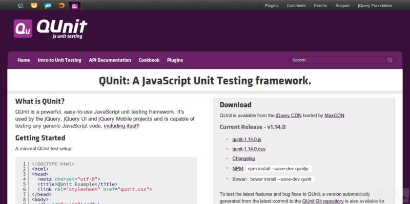 QUnit是一个非常强大的JavaScript单元测试框架,可以帮助程序员调试代码。它是由 jQuery团队的成员写的,而且是jQuery的官方测试套装。QUnit一般是足以测试任何常规JavaScript代码,它甚至可以通过一些JavaScript引擎,比如Rhino或V8来测试服务器端JavaScript。