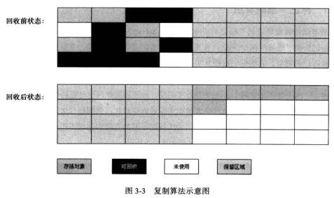 复制算法在对象存活率高的情况下要执行较多的复制操作,效率将会变低,而在对象存活率高的情况下使用标记-整理算法效率会大大提高。