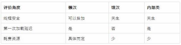 评价上述的单例模式有三个角度:线程安全?第一次调用实例方法延迟加载?每次调用方法耗费大量资源?