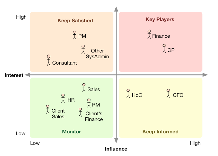 有了这样的认识,我们可以将辨识出的利益相关绘制入矩阵: