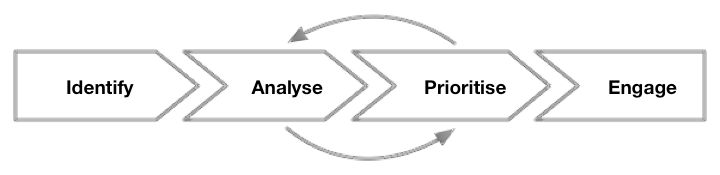 敏捷宣言主张通过及时重新定义产品路线图的方式响应变化。这些个重新定义的过程也常常会导致利益相关者的兴趣和影响力水平的转变,所以我们的沟通策略也应该进行相应的调整。