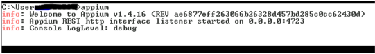 C:UsersTest>appium -a 127.0.0.1 -p 1235