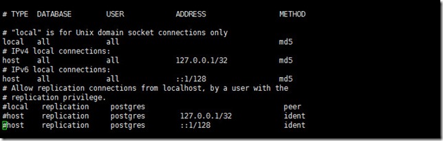 为了允许我们创建的用户能够连接Postgresql,我们需要设置一下pg_hba.conf文件,命令如下: