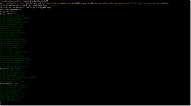 在终端下,进入Metasploit的文件中,使用Bundler Gem来安装合适的Gem版本: