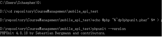 epositoryCourseManagementmobile_api_test (注意前面的分号,路径填存放phpunit.phar的路径)。配置这个是为了在任意位置都能使用PHPUnit,不配置的话,需要在phpunit.phar的路径下才能使用PHPUnit。