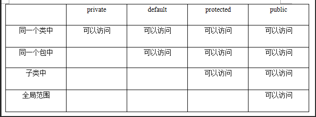 protected访问控制级别:如果一个成员(成员包括属性和方法)使用protected访问控制符修饰,那么这个成员既可以被同一个包中其他类访问,也可以被不同包中的子类访问。