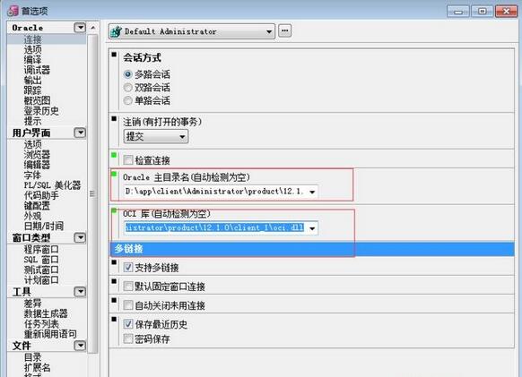 在图中红色框中,分别填入 D:appclientAdministratorproduct12.1.0client_1 和 D:appclientAdministratorproduct12.1.0client_1.oci.dll