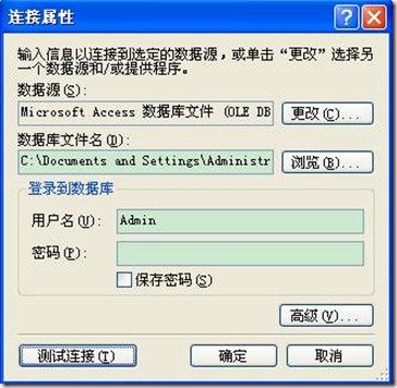 4)在这个界面中,选择一个Acess表data.mdb,单击"确定"按钮完成设置,回到"单元测试属性"窗口。可以看到数据源的已经设置好。