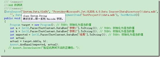 通过 TestContext 类的 DataRow 和 DataConnection 属性将数据提供给正在运行的单元测试。下面为使用TestContext 类的 DataRow属性来读入数据行