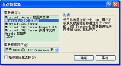 3)编辑"数据连接字符串"属性,在"属性"窗口中单击该属性,然后单击省略号 (…)。这将打开"选择数据源"对话框,其中列出了若干个可能的数据源,包括 ODBC、Microsoft SQL Server 和 Microsoft Access。选择一个数据源后将打开一个特定于该数据源类型的对话框;可以使用此对话框配置该数据源的连接属性。配置完数据连接后,连接字符串会作为"数据连接字符串"的值出现。此字符串还会作为单元测试方法的一个属性存储起来