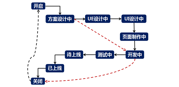 如果该项目提案不依赖于页面展示,那么不再需要经历UE设计、UI设计和页面制作等阶段,直接进入开发、测试和上线阶段。