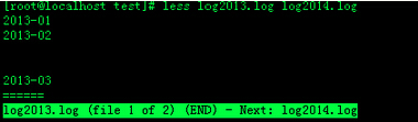 Less log2013.log log2014.log