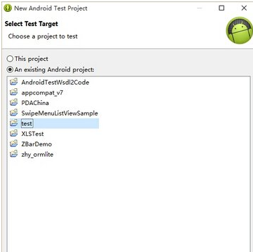 继续点击Next,这时会让我们选择为哪一个项目创建测试功能,这里当然选择test了,如下图所示。