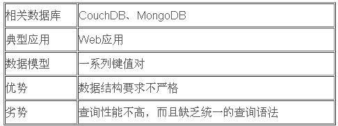 这一类数据库主要会使用到一个哈希表,这个表中有一个特定的键和一个指针指向特定的数据。Key/value模型对于IT系统来说的优势在于简单、易部署。但是如果DBA只对部分值进行查询或更新的时候,Key/value显得效率低下了。